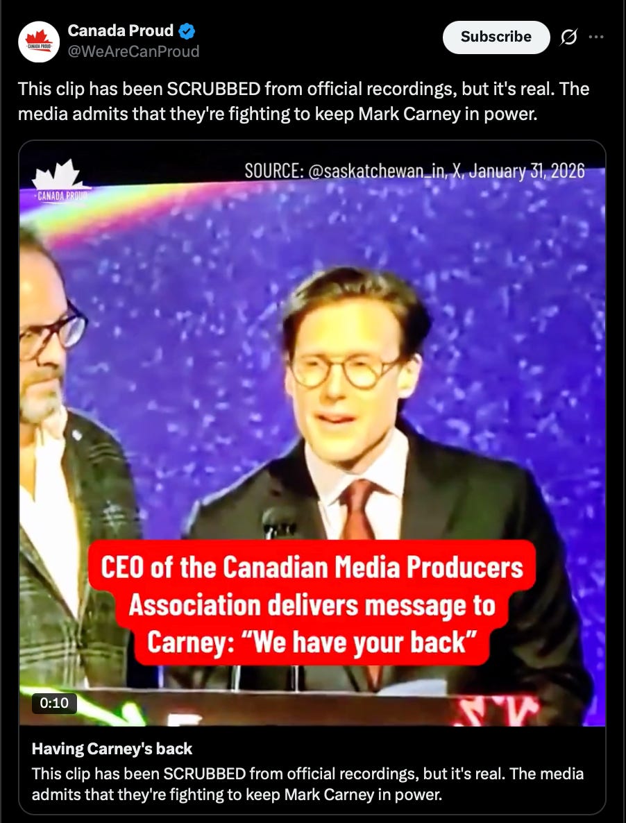 In fact, the convention where he made this statement is the same one where Mark Carney had his cuddly moment with Heated Rivalry star Hudson Williams.