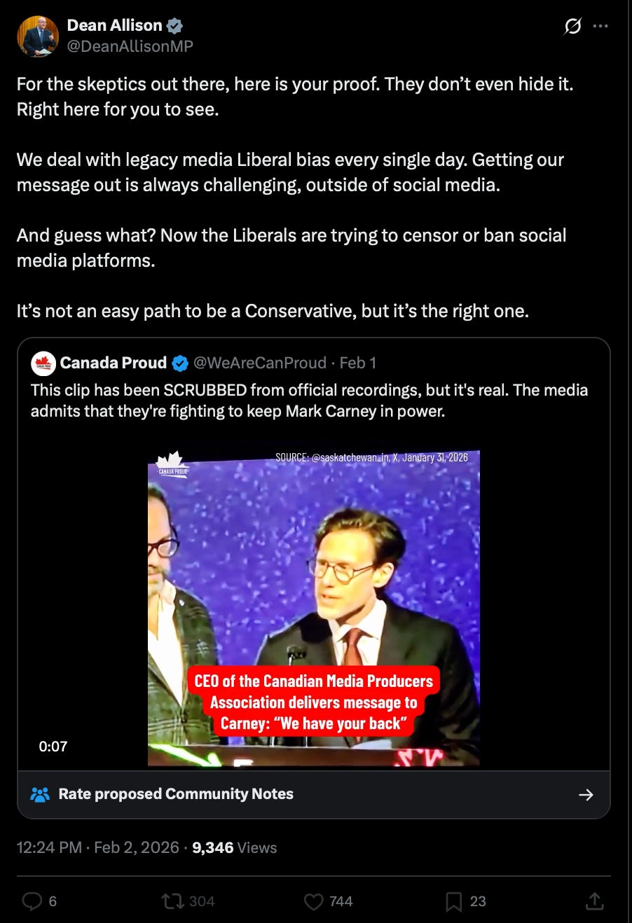 To hear several Conservative MPs and right-wing influencers tell it, the “we” in question is the mainstream media. This statement, they claim, is the firm proof of what they’ve always suspected: the legacy media loves the Liberals!!1!1!